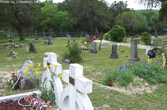 Directions: From Kerrville, go south on State Hwy 16 to State Hwy 173, turn left and continue on SH 173 to Camp Verde. Turn right on Camp Verde Road which runs along the north bank of Verde Creek. A half-mile down this road you will see the cemetery on the left.